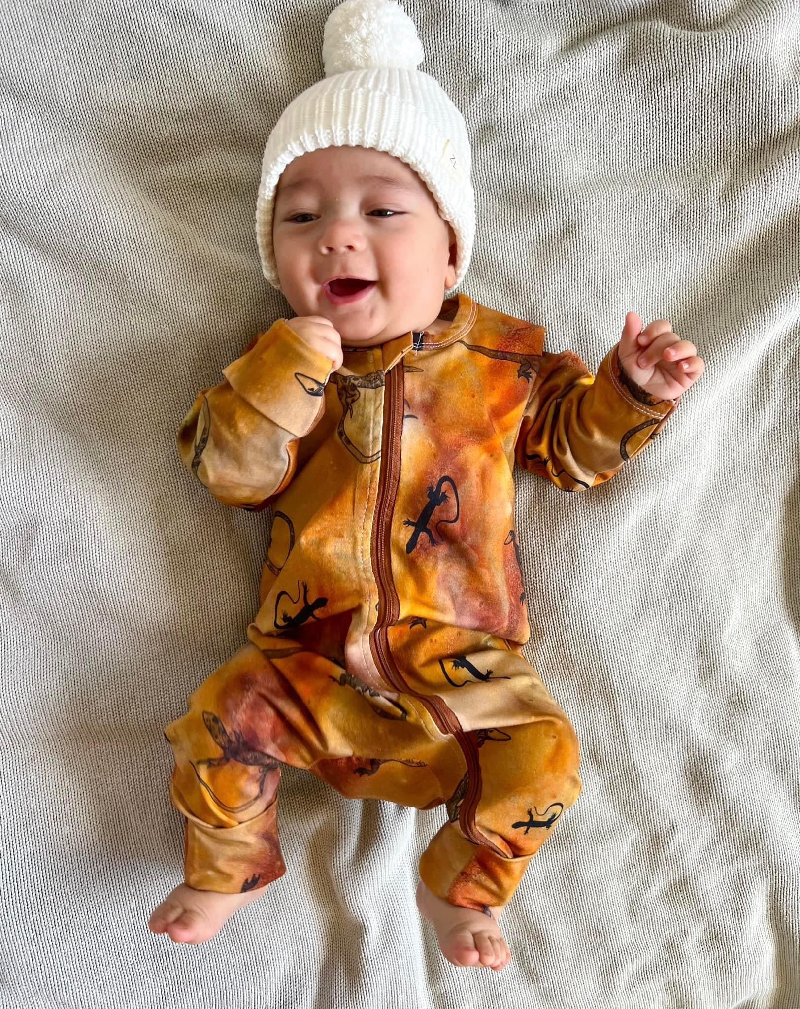 What’s not to love? A zip suit is the perfect baby attire. Sleeping, napping, playing, out and about or simply showing off with a cuteness overload. A two way zip allows for easy changes. Fold over feet so you can keep those tootsies toasty.